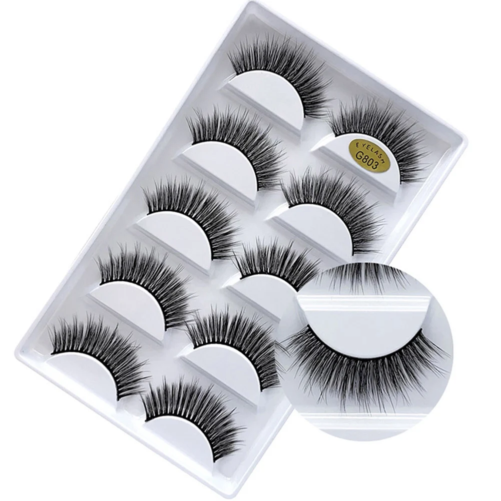 5Pairs 3D Faux Mink Hair False Eyelashes Natural Long Thick Lashes Extension Fake Lashes Set Eye Ma