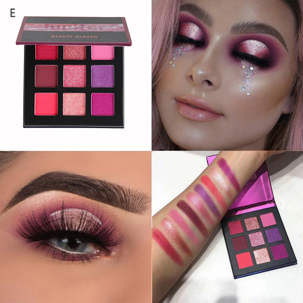 Beauty Glazed 9 Colors High Pigmented Matte Eye Shadow Palette Glitter Shimmer Eyeshadow Makeup Pal
