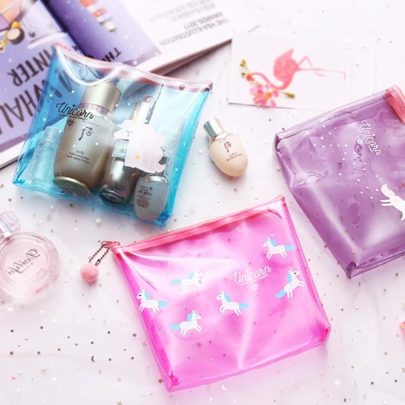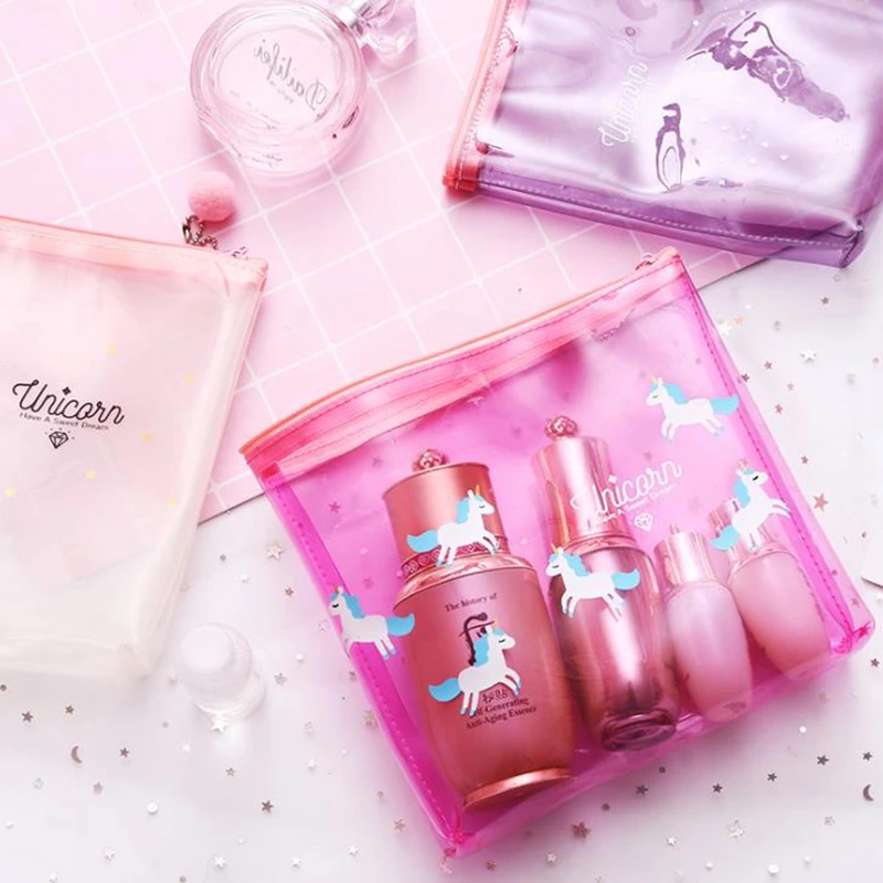 UOSC Unicorn Travel Make Up Case Women Transparent Cosmetic Bag Zipper Makeup Beauty Wash Organizer