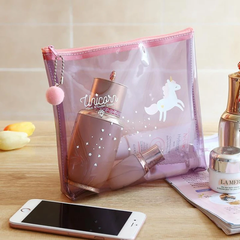 On sale Chance for UOSC Unicorn Travel Make Up Case Women Transparent Cosmetic Bag Zipper Makeup Beauty Wash Organizer