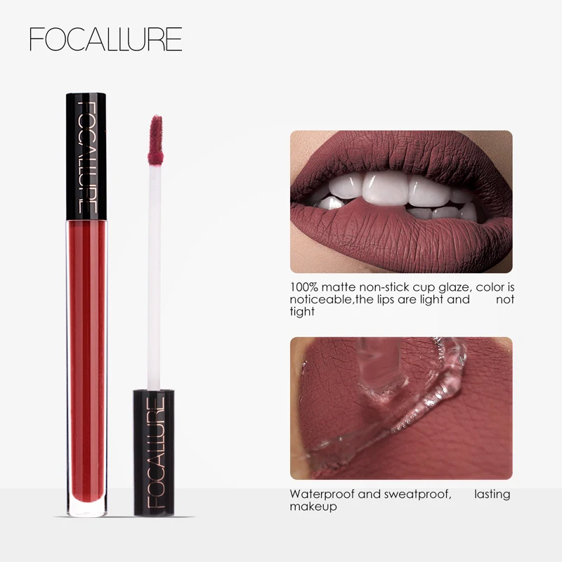 FOCALLURE Liquid Lipstick Makeup Matte Lip Tint Sexy Pigment Waterproof Tint Nude Gloss Kiss-proof Make up Liquid Lipstick
